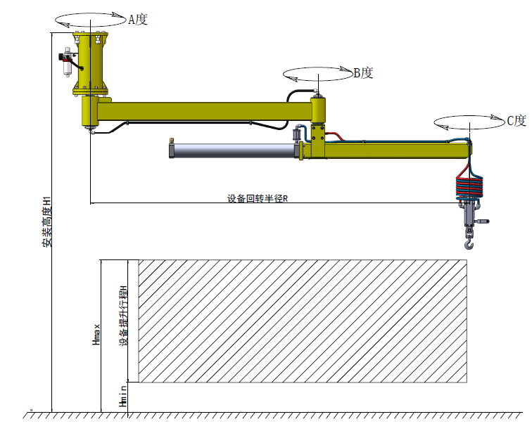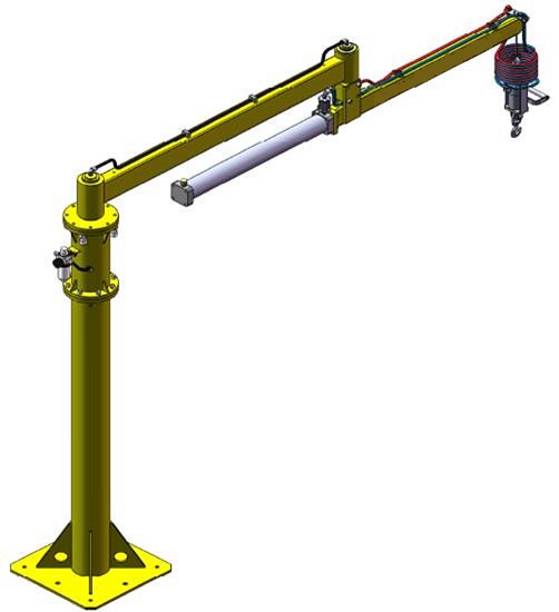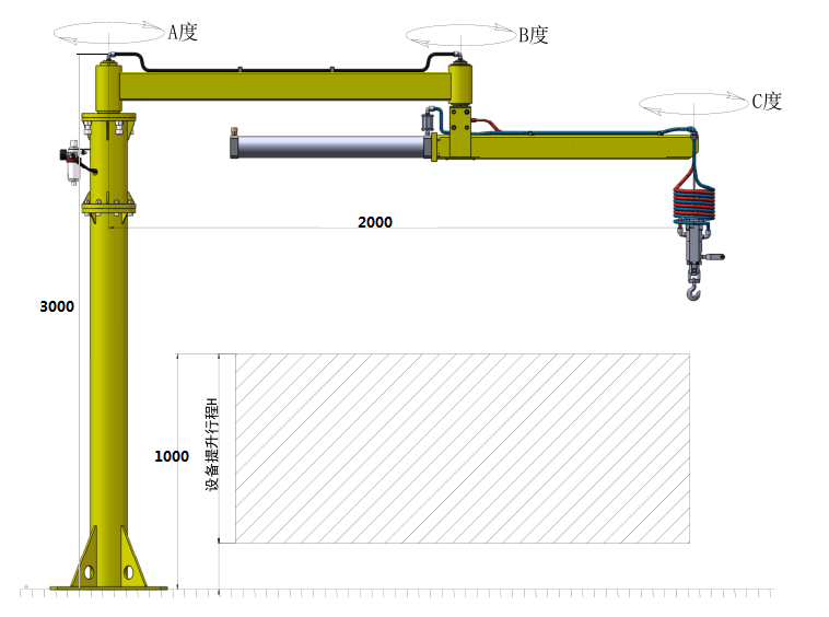 4.机械手在水平方向的自由度为360度旋转,并可以在任意位置气动锁定。5.上下行程可根据现场要求定制(标配1000mm);半径可根据现场情况定制(标配2200mm);负载:气动可实现最大负载300KG,电动可实现最大负载500KG葫芦提升机02